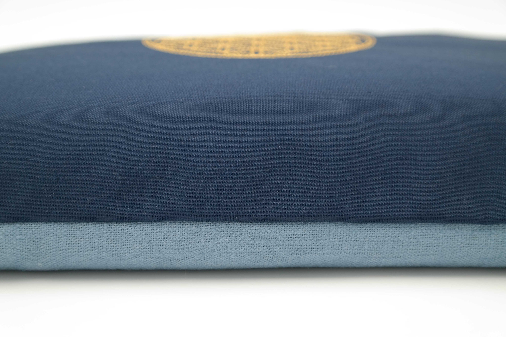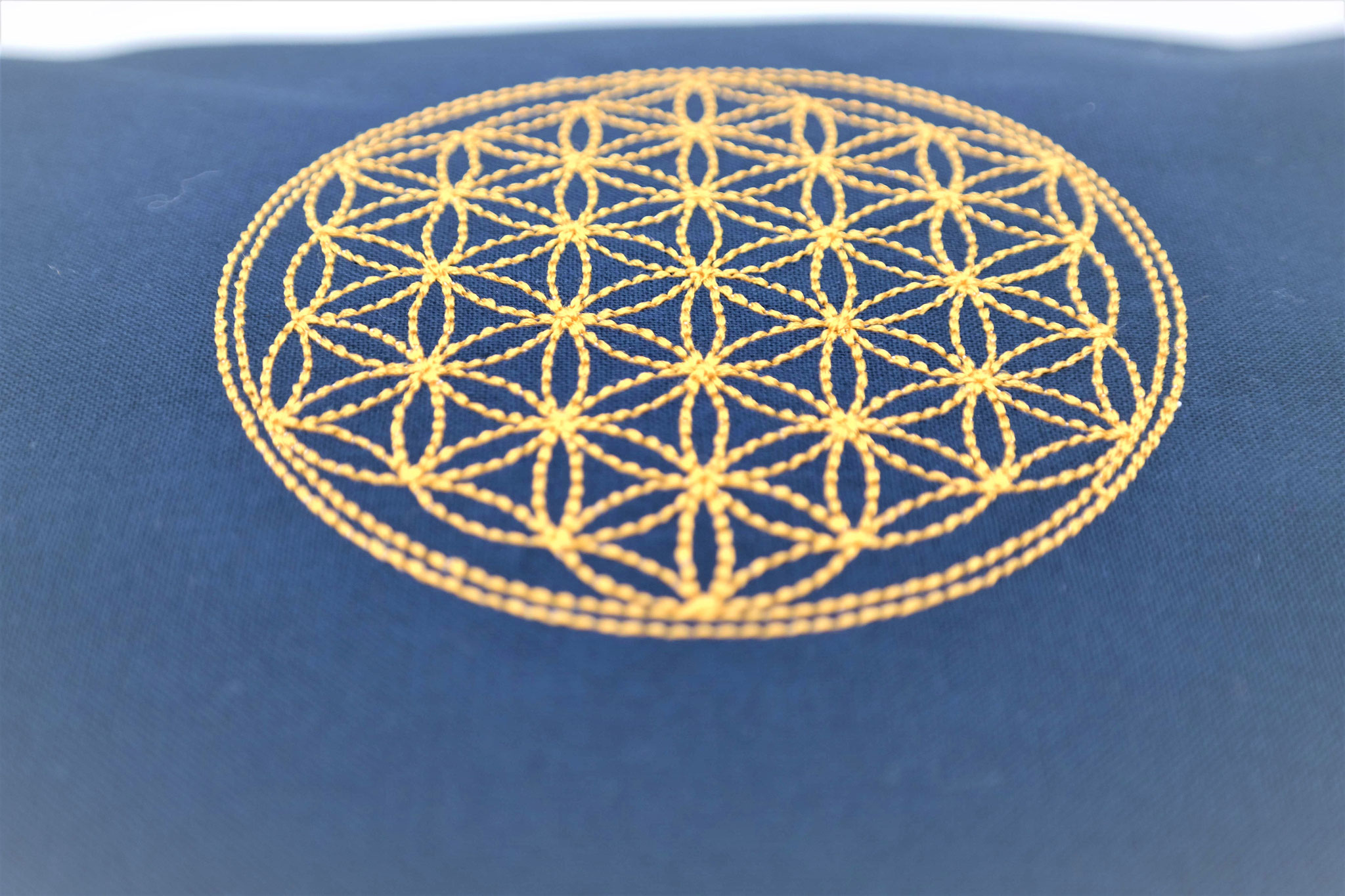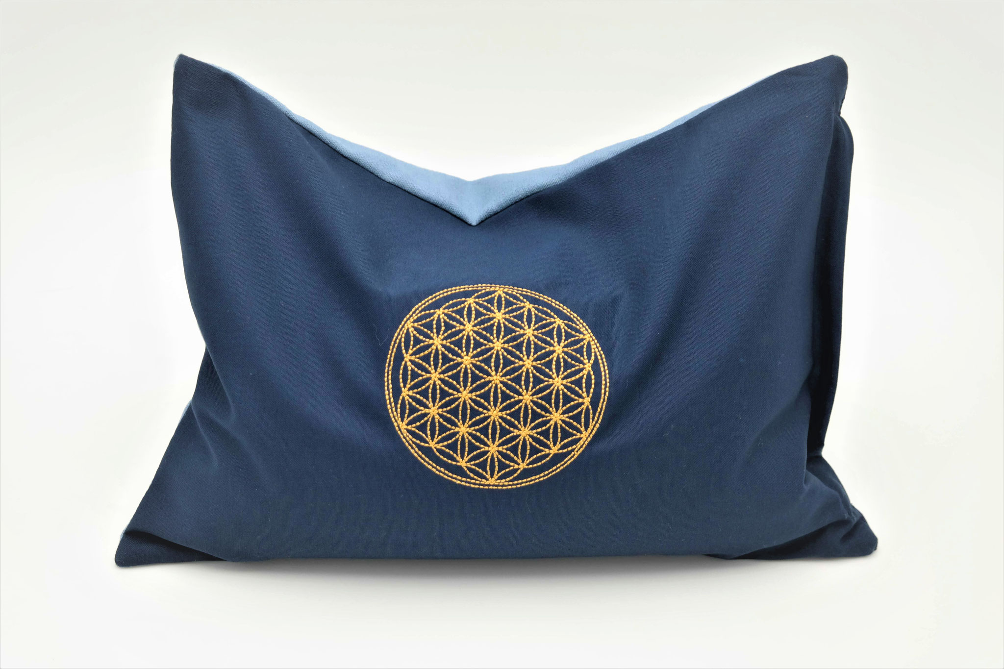 Kissen mit der Blume des Lebens Marine/Rauchblau